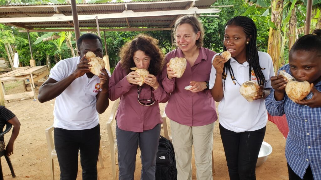 It was their turn to gift us something, and they offered us coconuts to drink. I love drinking coconut water, and it doesn’t get much better than fresh-from-the-tree coconuts in Ghana.