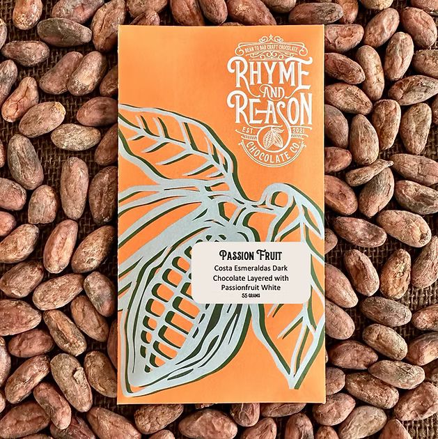 Our final selection was a two-tone bar from Rhyme and Reason in North Carolina that combined passionfruit infused white chocolate on top of dark chocolate from Ecuador. Chief Chocophile, Lauren Adler, suggested tasters place the dark chocolate side on their tongue to ensure the passionfruit flavors didn’t overwhelm the dark chocolate.